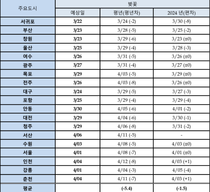 1. 2025년 지역별 벚꽃 개화 시기